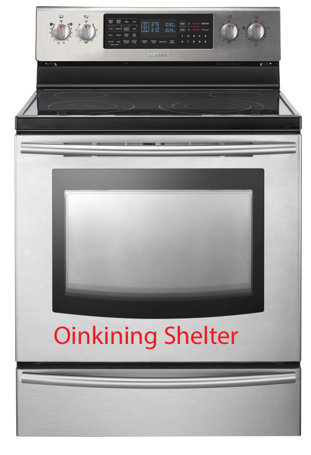 The Flying Pig: I have even labeled it. This Oinkining shelter fits one human at a time or two Gary Colemans. It is warm and cozy. When the Oinkining comes, just lower the door, step inside and set the time for 350 degrees…or I mean days…eh…350 days. Then you will know what it feels like….oops…I mean then you will be safe through the Oinkining….And when the Oinkining ends, well I cannot promise you a T-Shirt or anything like that. Instead, every Human will get one of these courtesy of the far Superior Piggies.