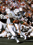 Morrall, feeding off of the crowds’ emotion, threw a perfect 15 yard pass to Paul Warfield.  Mercury Morris ran twice for a total of 10 yards.  There were less than 5 minutes left on theuspw_5028720 clock!  Paul Warfield was having his best game of the season against the team that had traded him away.  Morrall decided to go to his red hot receiver.  Morrall arched a deep pass down field to Warfield who juggled the ball, then brought it in at the Cleveland Browns 20!!  The Orange Bowl exploded as Dolphin fans screamed their lungs out!  The clock was ticking.  Then, it stopped.  Fans in the lower and upper decks of the west end zone jumped up-and-down as the public address system played, and then replayed, the Miami Dolphins fight song during a Browns’ time out!  The noise was absolutely unbelievable!!  On the next play Mercury Morris ran for only 2 yards.  Then, Morrall passed to (who else?) Paul Warfield.  Warfield could not catch the ball because Browns’ ljim_kiick_1972_12_24-199x300inebacker Bill Andrews had his arms wrapped around Miami’s all-pro receiver before the pass arrived.  The interference call gave Miami a FIRST AND GOAL at the 8!!  Again, the Miami crowd went absolutely berserk!!  Some fans actually had to cover their ears as the deafening roar and the constant celebration actually caused the upper deck to sway!!  This was the historic Orange Bowl AT ITS ABSOLUTE BEST!!  Visiting teams had virtually NO CHANCE under these conditions AND THEY KNEW IT!!  The Orange Bowl was the greatest home field advantage in NFL history, especially in moments like this!!  Earlier in the game, Jim Kiick had lost the ball on a rare fumble.  Morrall knew Kiick wanted to make amends.  So, in the huddle, Morrall called Kiick’s number.  Norm Evans and Bob Kuechenberg opened up a nice hole and Kiick burst through to SCORE THE GO AHEAD TOUCHDOWN!! –The Dolphins had a 20-14 lead!  Again, the Orange Bowl exploded with an ear-splitting celebration!!