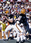 80,010 fans crammed into the historic Orange Bowl for this much anticipated match-up of the two hottest teams in the National Football League.  In the first quarter Cleveland prepared to punt for the second time.  This time, Miami rushed 10 players instead of the usual 9.  Cleveland was not prepared for this change.  Charlie Babb broke through and cleanly blocked Don Cockroft’s punt!  Babb picked-up the ball at the 7 and bounced into the end zone for an early 7-0 Miami lead.  For the third consecutive series, the “No Name Defense” throttled Cleveland’s offense.  After another Cleveland punt, Miami drove from their own 16 to the Browns’ 33 yard line.  One of the biggest plays was an end-around to Paul Warfield good for a 21 yard gain.  Yepremian’s 40 yard field goal gave Miami a 10-0 lead after one quarter.