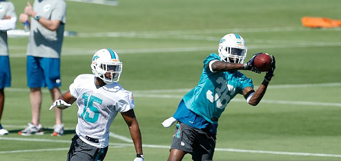 Go to MiamiDolphins.com RT had an interview today where he was talking about Landry, saying he makes catches like his one hander today about once a week, and he knows he can throw the ball away from the defender and Landry is going to get it.