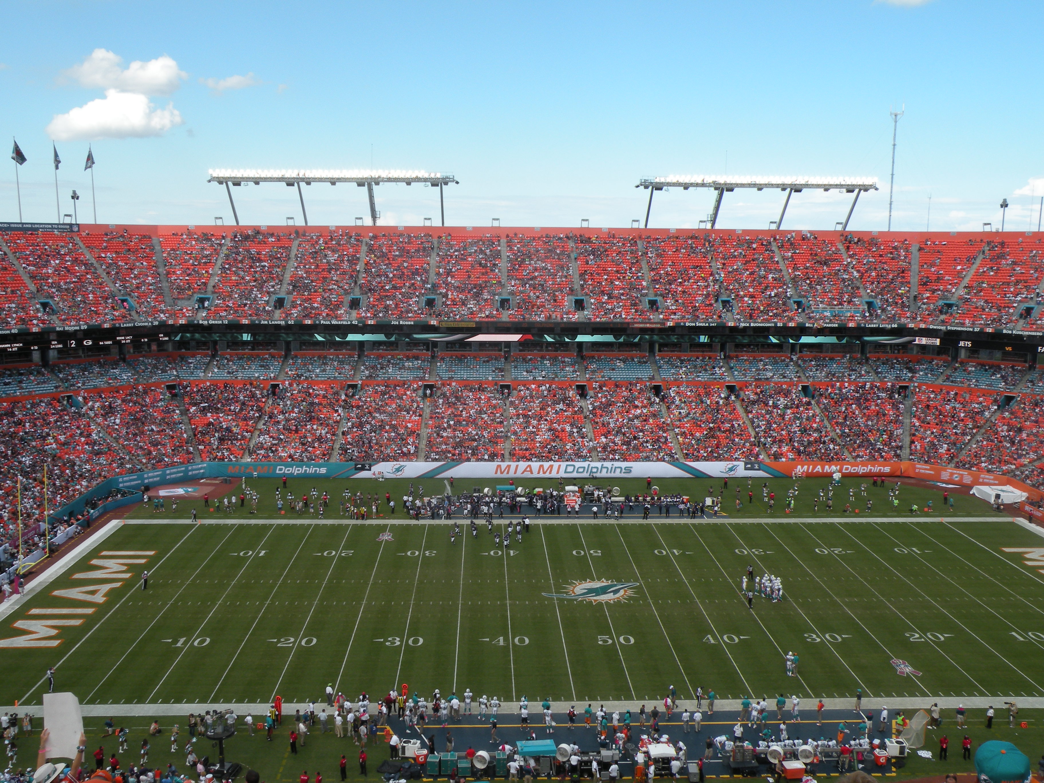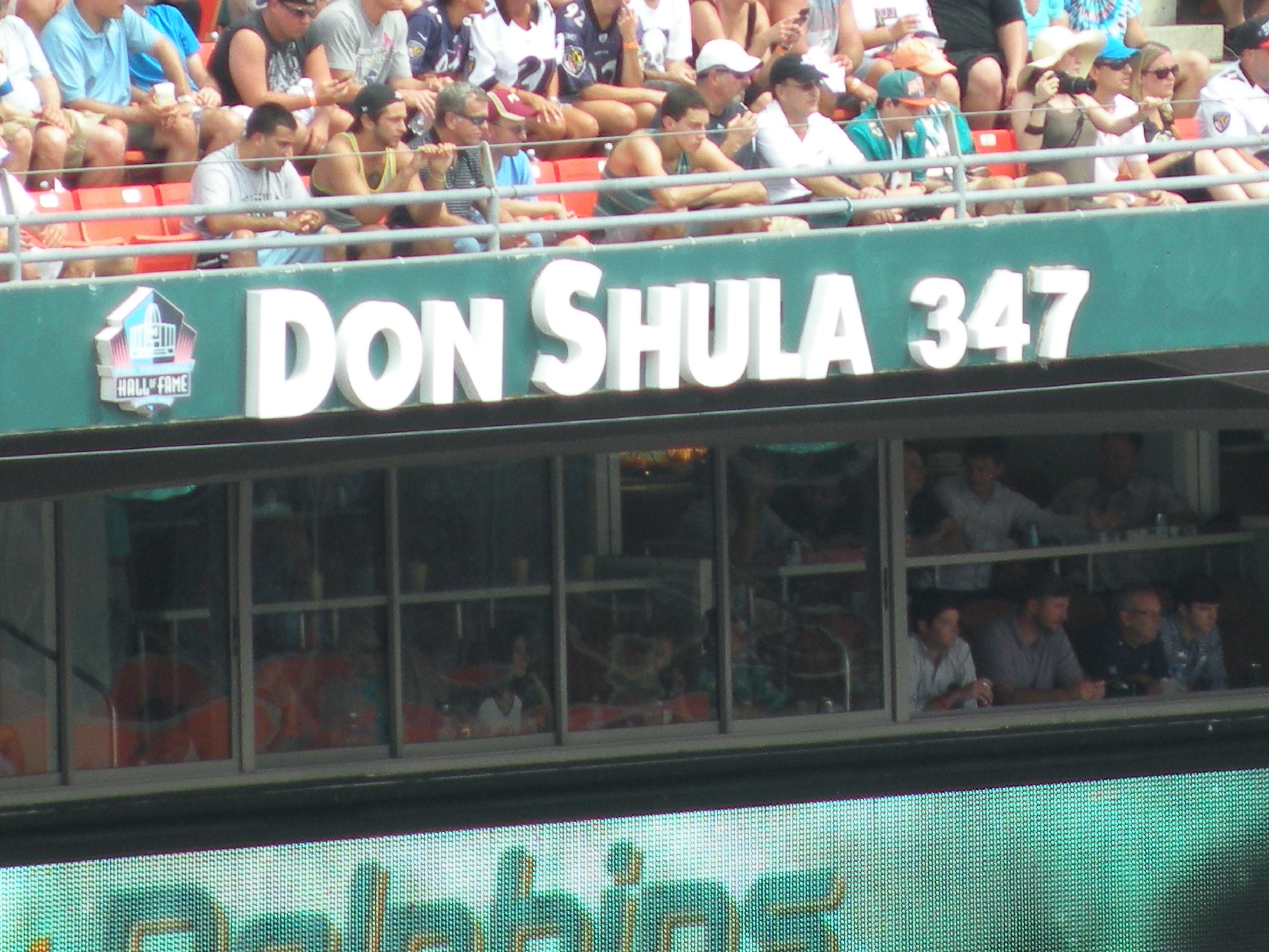 As far as the pictures I don’t have, I have a list. I want the pic of Manny Frenandez’s name on the ring of Honor as he was finally inducted  last year. He’s always been one of my favorite all-time Dolphins. Same for Garo, I want a pic of his name (RIP). I want a picture very similar to above, looking across the stadium,  but it of course will show the new aqua seats. Perhaps pictures of some of the new fancy sections but I also want some of the corners where they removed seats so I can have a progression of old,  new in waiting and then next year with the screens in.