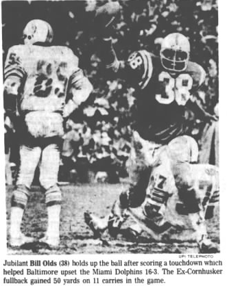Following a turnover, Colts running back Bill Olds scored on a two yard touchdown run late in the second stanza. Then, in the third quarter, Tom Mitchell caught a one yard TD pass from Marty Domres for a 16-0 Colts lead. Garo’s field goal early in thee fourth quarter made the final score 16-3, Baltimore. Miami’s 10-game winning streak was over.