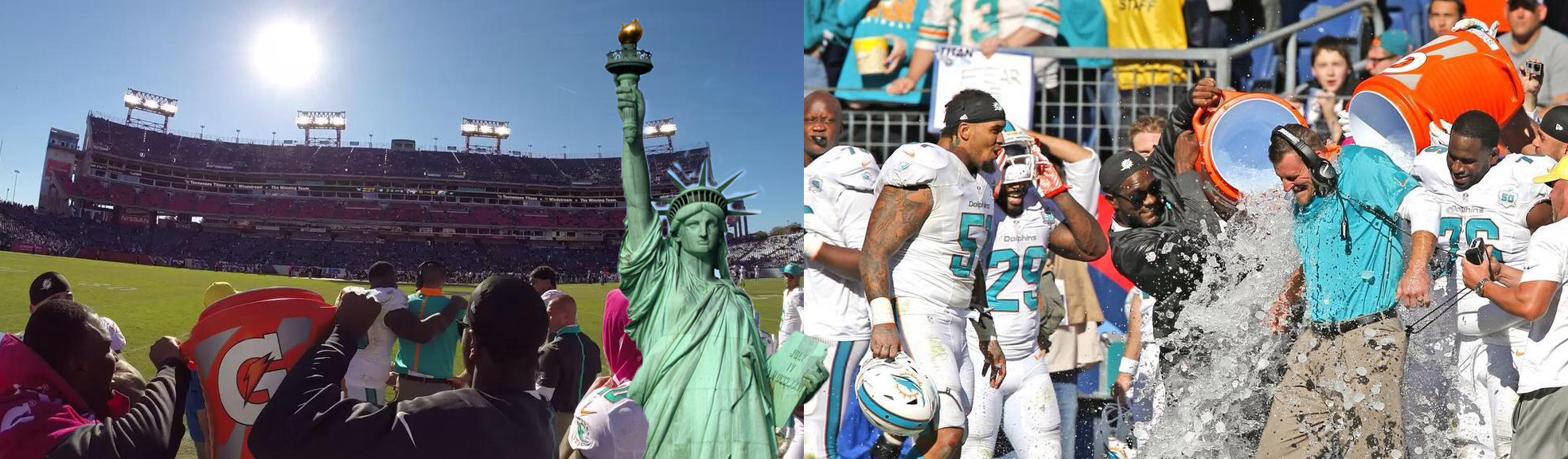In this pic, Lady Liberty oils the ball right before Cameron Wake sacks Marcus Mariotta. The sack caused a fumble which we recovered.