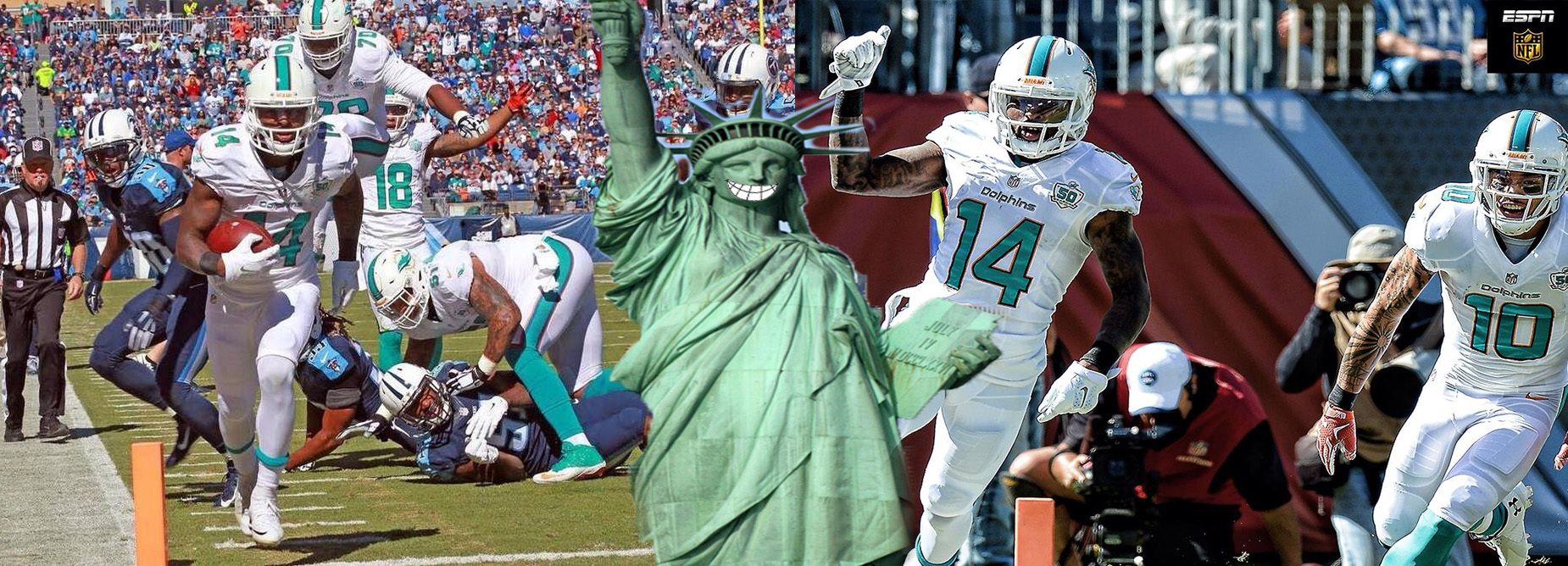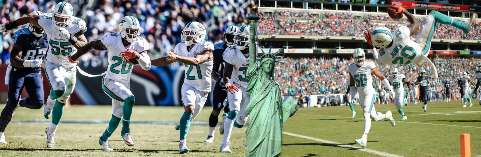 Rashad Jones had a pick 6. The play was a huge play early in the 3rd quarter which you can tell by Lady Liberty’s celebration. After the score the Dolphins lead the game 24-3. By that time we were in the driver’s seat.