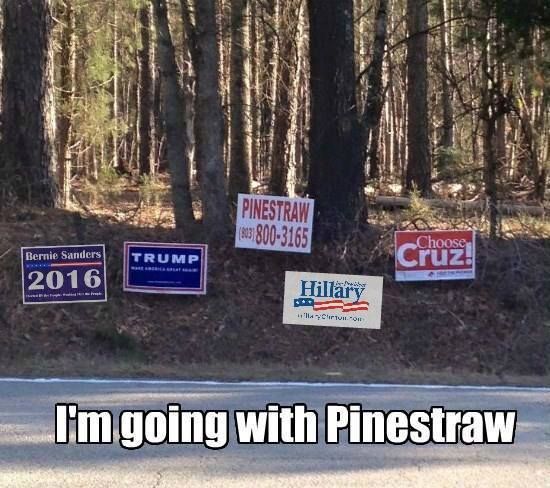 you guys are crazy, you do all know that pinestraw is just clintons hair.