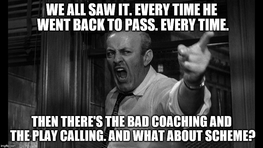 How many times was he rushed to the sideline to make a last option pass? I found it annoying. LOL