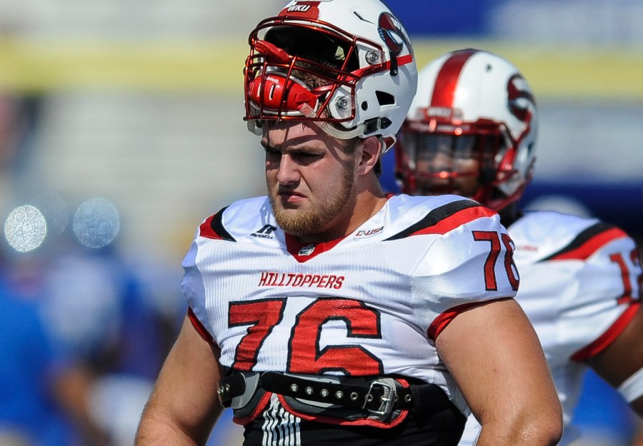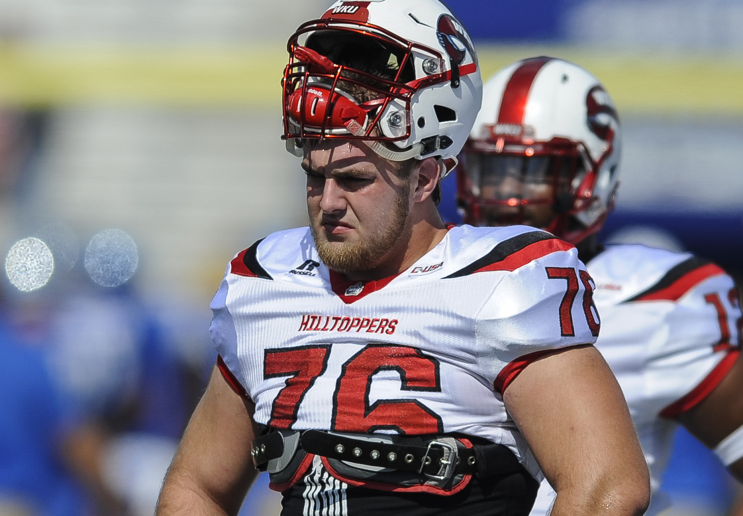 October 15, 2016 Western Kentucky Hilltoppers offensive lineman Forrest Lamp (76) during the football game between the WKU Hilltoppers vs Middle Tenn. Blue Raiders at Floyd Stadium in Murfreesboro Tennessee (Photos by Steve Roberts/WKU Athletics)