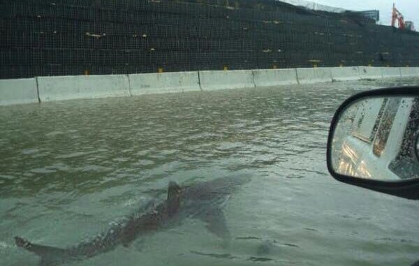 Believe it or not, this is a shark on the freeway in Houston, Texas. #HurricaneHarvy
