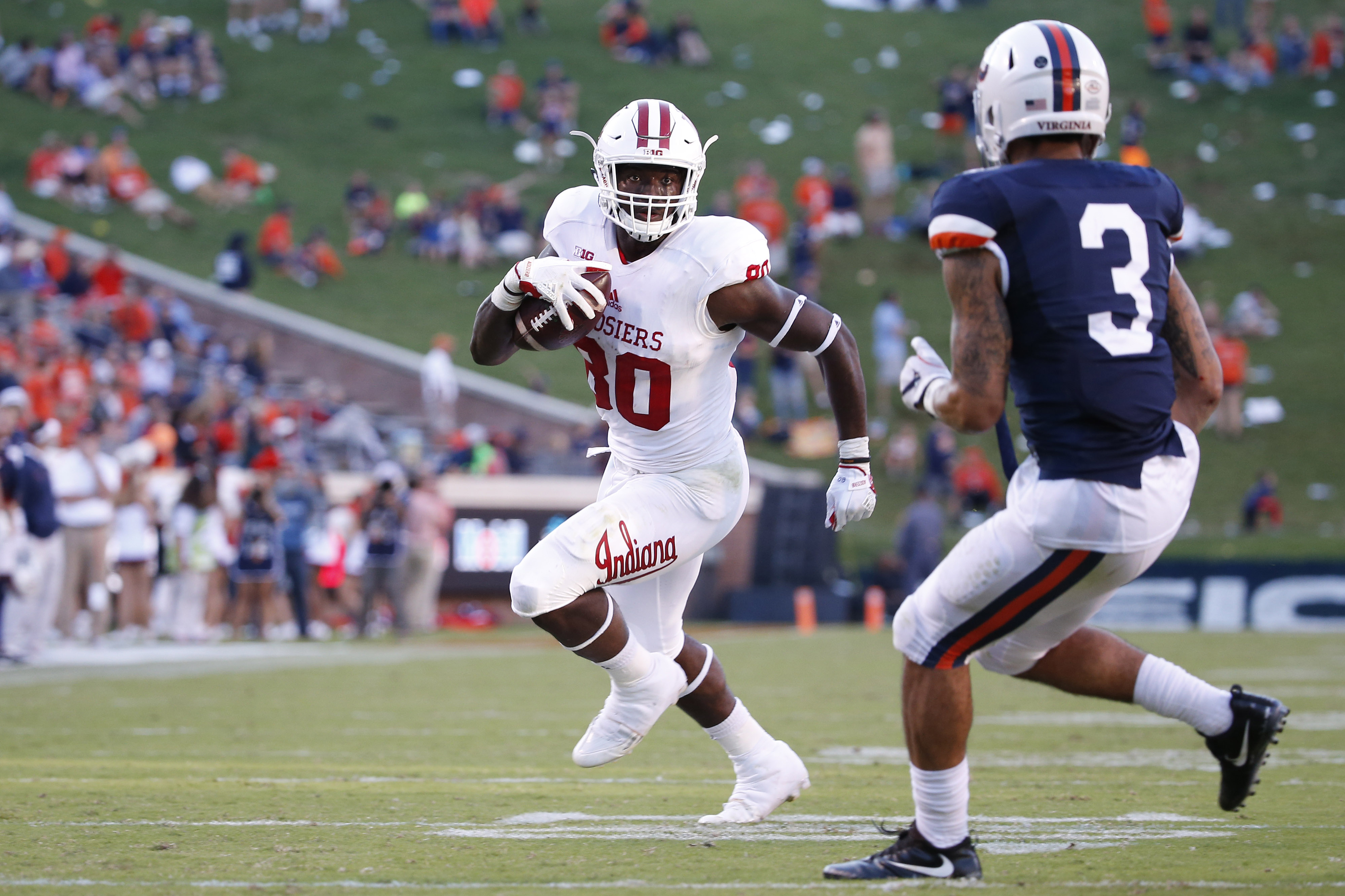 Sep 9, 2017; Charlottesville, VA, USA; Indiana Hoosiers tight end Ian Thomas (80) carries the ball as Virginia Cavaliers safety Quin Blanding (3) defends during the second half at Scott Stadium. The Hoosiers won 34-17. Mandatory Credit: Amber Searls-USA TODAY Sports