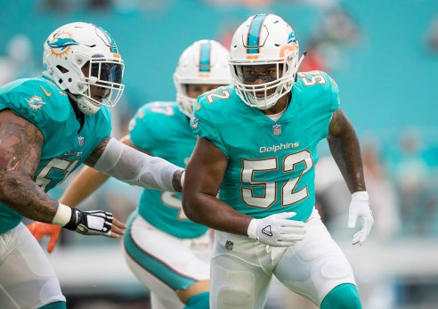 Miami Dolphins linebacker Raekwon McMillan (52) during warmups before pre-season game at Hard Rock Stadium in Miami Gardens, Florida on August 10, 2017. (Allen Eyestone / The Palm Beach Post)
