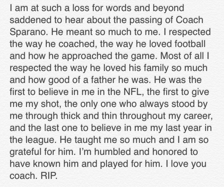 Sad to hear about Coach Sparano passing. Like a few here said, he seemed out of place as a HC but he was a great person and I think a pretty damn good OL coach. He was way too young.