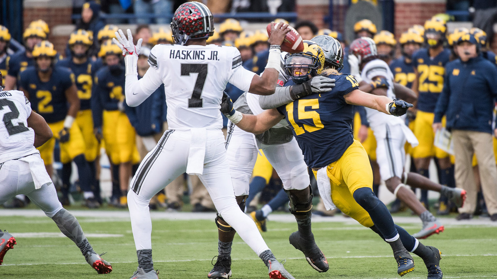 The University of Michigan football team hosts Ohio State at Michigan Stadium in Ann Arbor, MI. on Nov 25, 2017