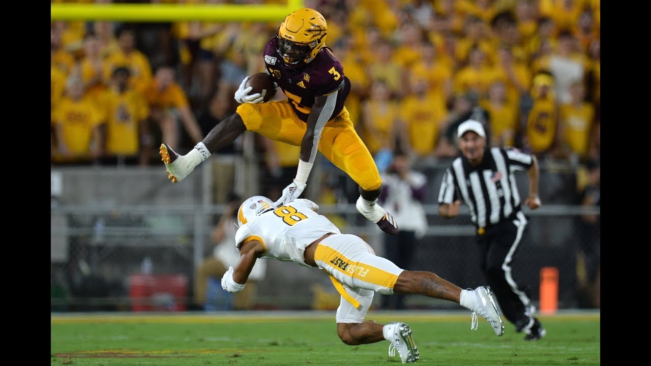 The polar opposite of Dillon is Arizona State’s Eno Benjamin. Almost 50 pounds lighter than Dillon he is a more balanced running back. Benjamin had 42 catches in 2019 and 82 in his career at Arizona State. But don’t let that mislead you, Benjamin does not project as a 3rd down back. He’s just a solid athletic low center of gravity runner who is always productive. Why is he a day 3 pick? Well not only is he a bit undersized, but he also doesn’t have break away speed. He ran a 4.57 40 at the combine.