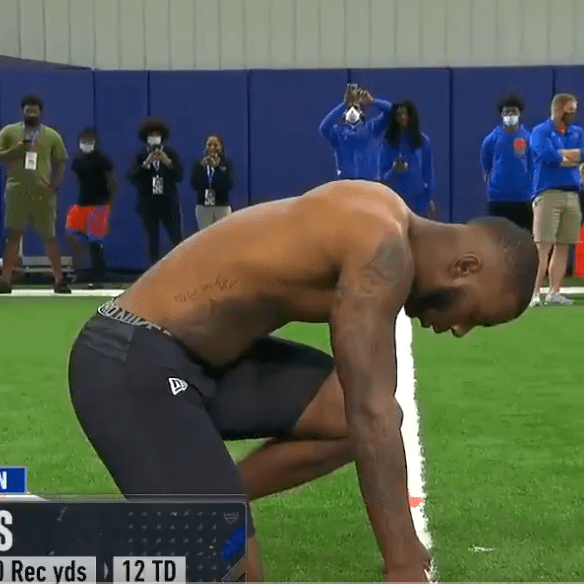 “The Underwear Olympics” as some people call it. Regardless of that smear, I feel like the combine has its place, and just like any piece of information, if you’re doing your analysis correctly, it’s another piece of data you use to form your final report, not the only piece. The problem of not having a NFL Combine is the information you get from Pro Days, which are not sanctioned by the NFL, can be slanted, or maybe I should just say ARE slanted. Each college program wants their athletes to succeed because it helps their program succeed. It seems like all the top WR prospects that actually ran at their Pro Day ran sub 4.4 times. It’s not impossible that it’s true, but more than likely those hand held timers (homers) shaved a bit to make that happen. I like when each player is running on the same strip of turf and timed by the same guys and called out if they lean a little too forward or don’t start from the right position. Geez, these guys don’t even wear shirts anymore! Will they be running in jock straps soon, or maybe without them? I suspect that next year we’ll be back to the good ole combine as it was and they will have to wear shorts, shirts and those dreaded heavy numbers on the shirts that most likely easily add a few tenths of a second to all timed events.