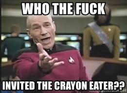 https://www.google.com/imgres?imgurl=https%3A%2F%2Fmemegenerator.net%2Fimg%2Finstances%2F54505955.jpg&imgrefurl=https%3A%2F%2Fmemegenerator.net%2Finstance%2F54505955%2Fpicard-wtf-who-the-fuck-invited-the-crayon-eater&tbnid=jNAa9ZRsyh3JVM&vet=12ahUKEwig_JjX7qPyAhVHEd8KHZ-WC5wQMygUegUIARDYAQ..i&docid=wqi2J1JitgqR5M&w=306&h=227&q=crayon%20eater%20meme&hl=en&ved=2ahUKEwig_JjX7qPyAhVHEd8KHZ-WC5wQMygUegUIARDYAQ