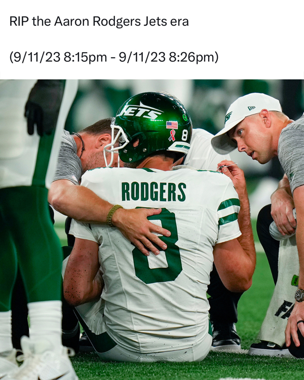 The funniest comment about the game last night I’ve seen, Aaron Rodgers didn’t complete a pass to any Jets player, but Josh Allen had 3. 😂