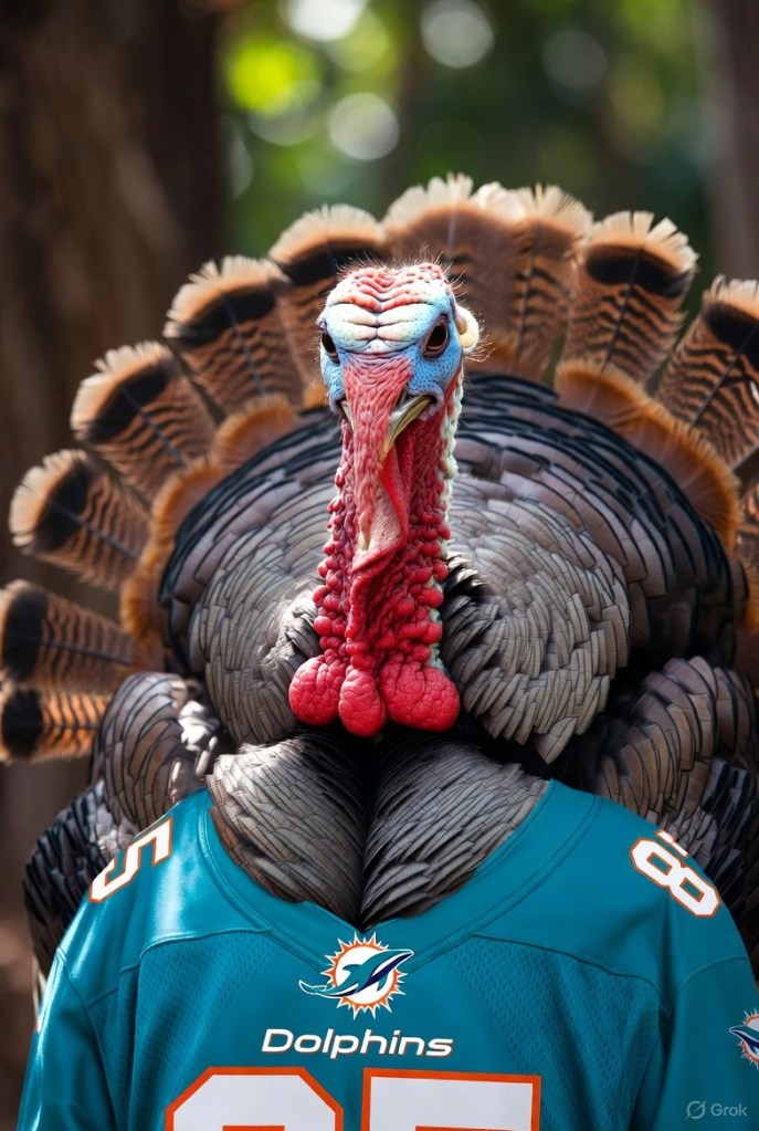 Happy Thanksgiving to all of us turkeys who still root for this team. It’s getting harder every year, because we seem to be going in the wrong direction, but as fans, we have no control as to the direction the team goes. It seemed as if Miami Dolphins Owner Stephen Ross was heading in the right direction when he let go former GM Chris Grier, but now we’re in a holding pattern. Let’s all hope we get a big surprise at season’s end and we actually clean up this mess and start anew with a new GM, new Head Coach and hopefully a winning direction! I hope you all have a wonderful Thanksgiving Day with your families or friends or combination of both. Eat well, drink well, and enjoy! Cheers!