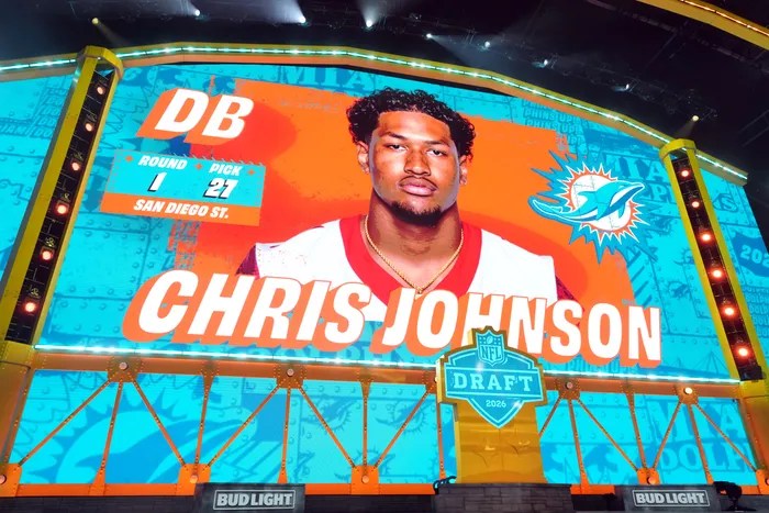 Jon-Eric Sullivan’s next trade in the draft was a trade up, as the Dolphins moved from RD1 Pick #30 to Pick #27 by trading Pick #30 and Pick #90 (RD 3) for the #27 Pick and and a 4th RD pick #138. The Dolphins at #27 selected San Diego St. Cornerback Chris Johnson. The 6’0 193lb CB will undoubtedly be pushed to start at the very important CB position. I had hoped we never traded up in this draft, I want more picks, but we really didn’t lose any picks, we just moved back from RD 3 to RD 4. Listen, it’s way too early to judge picks, but I would say the majority of us figured we’d go O-line and CB, and that’s precisely what we did. If/when S Caleb Downs is a perennial All Pro, and Kadyn Proctor is 6’7 380 and the fattest turnstile in Dolphins history, go ahead, pound your chest because you were right. On the other hand, if OT Kadyn Proctor is a motivated player here, and is mauling defenders at the LOS and downfield with regularity and provides solid protection for our QB, I won’t have a care in the world what Caleb Downs is doing.